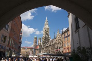 I hiked through Munich's pedestrian zone, over the Marienplatz square, then through the Isartor to the Isar river, which I'd follow for the next couple of days.