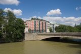 Around 2pm, I had arrived an Tierpark Hellabrun. From the trail, it didn't really look too spectacular, and after a short break I headed on. An hour later I crossed the Isar on Grosshesseloger Brücke, and as luck would have it a large raft - more or less a German beer garden on water, including musicians and everything - drifted by. I walked on, and by 5pm I had gone beyond the floodgate that meant I'd gone 15 km already.