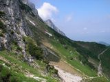 About one hour and forty-five minutes of hiking, and I found myself at an intersection, and a decision to make - would I keep on the ridge and go through the Benediktenwand, or would I chose a trail to the right that would probably be less exposed, and which would go past Tutzinger Hütte, a place where I'd be able to have lunch and refuel my water bottles? I chose the latter.